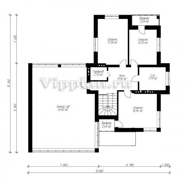 | Размеры дома: | 15.34м×14.17м |