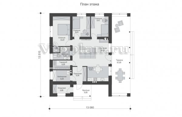 | Размеры дома: | 13.51м×13.06м |
